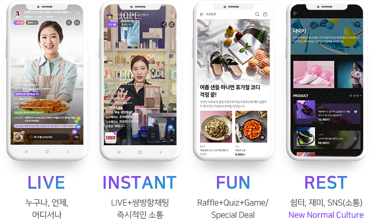 라이브 방송 플랫폼, 채팅, Raffle, Quiz, 상품 쇼핑플랫폼, 팬보드, Store, 한국화장품을 왕홍을 통해 중국에 LIVE로 판매